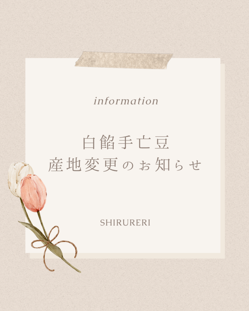 白餡手亡豆の産地変更のお知らせ